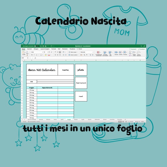 Kit Calendario Nascita. Un Template Di Excel Con Il Calendario Etsy