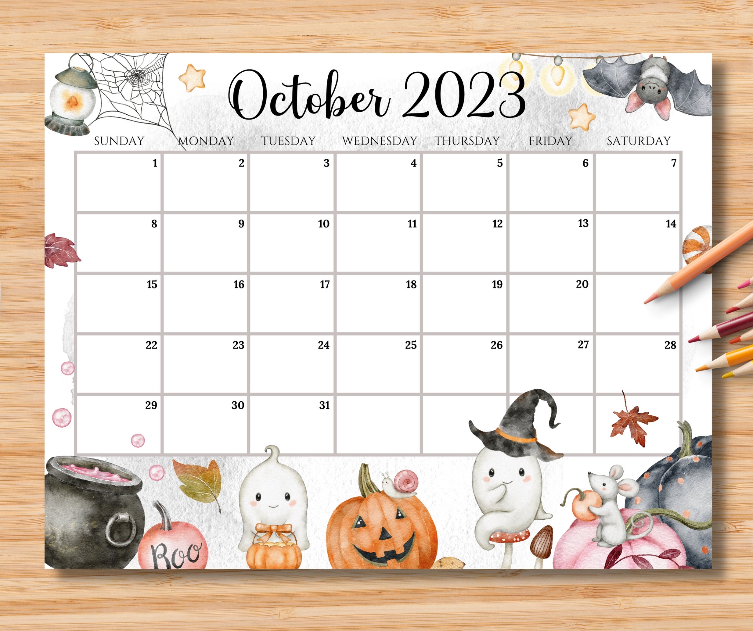EDITABLE October 2023 Calendar Cute Spooky Halloween 2023 Etsy