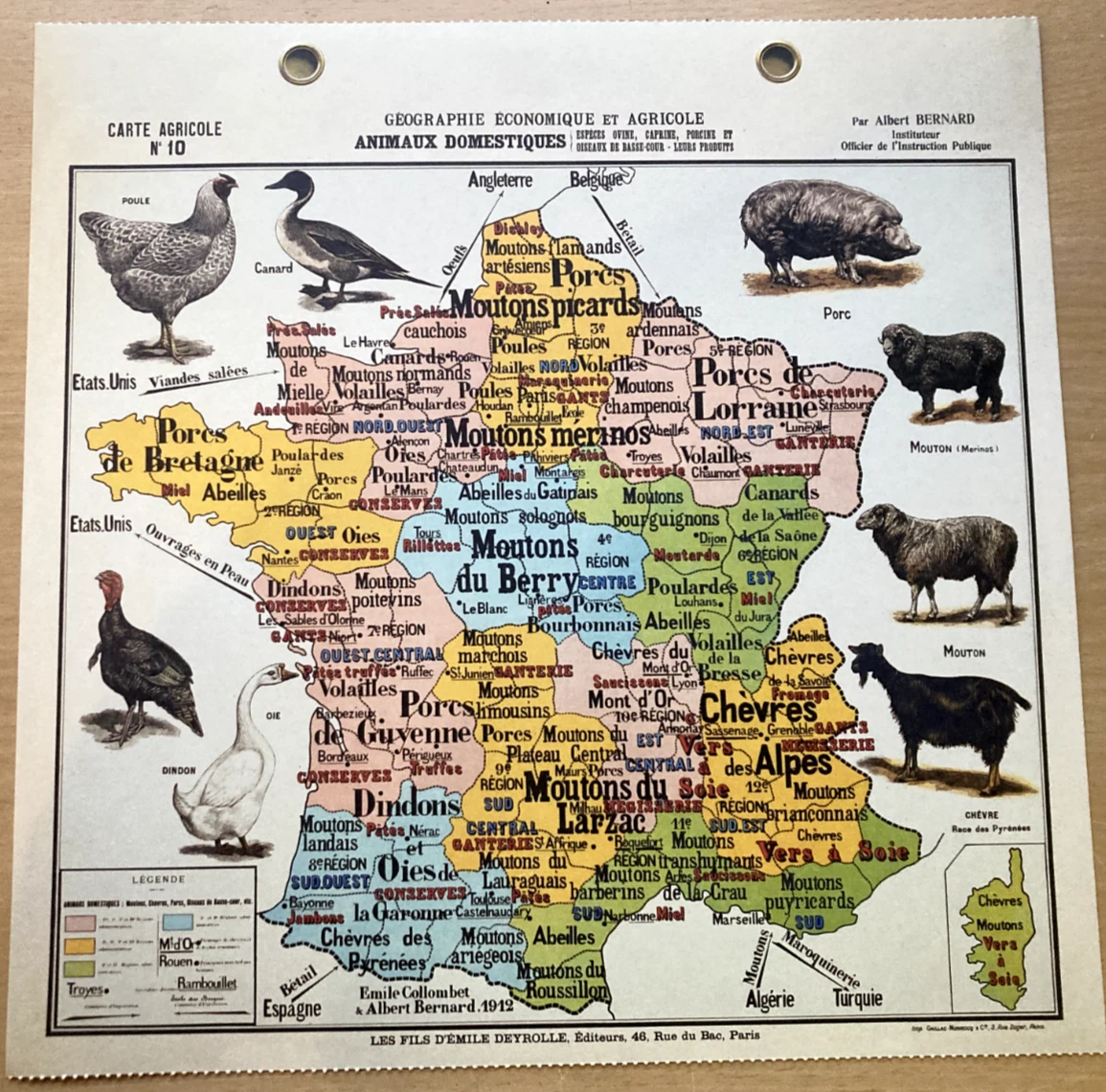Antique Poster Cartonner Deyrolle Animals Duck Hen Pig Sheep Goats