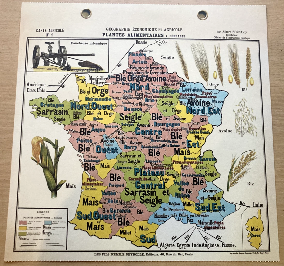 Antique Poster Cartonner Deyrolle Plant Cereal Wheat Barley Corn