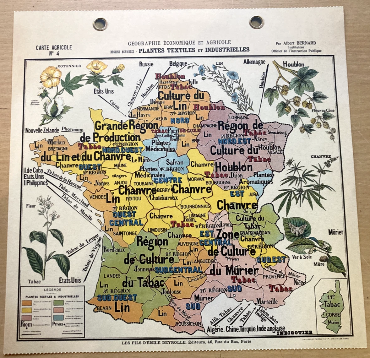 Antique Poster Cartonner Deyrolle Textile Linen Hemp Hops Mulberry