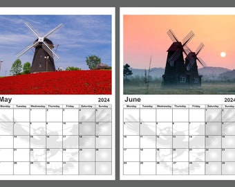 Windmill Calendar 2024 Yearly Calendar Picturesque Old Etsy Denmark