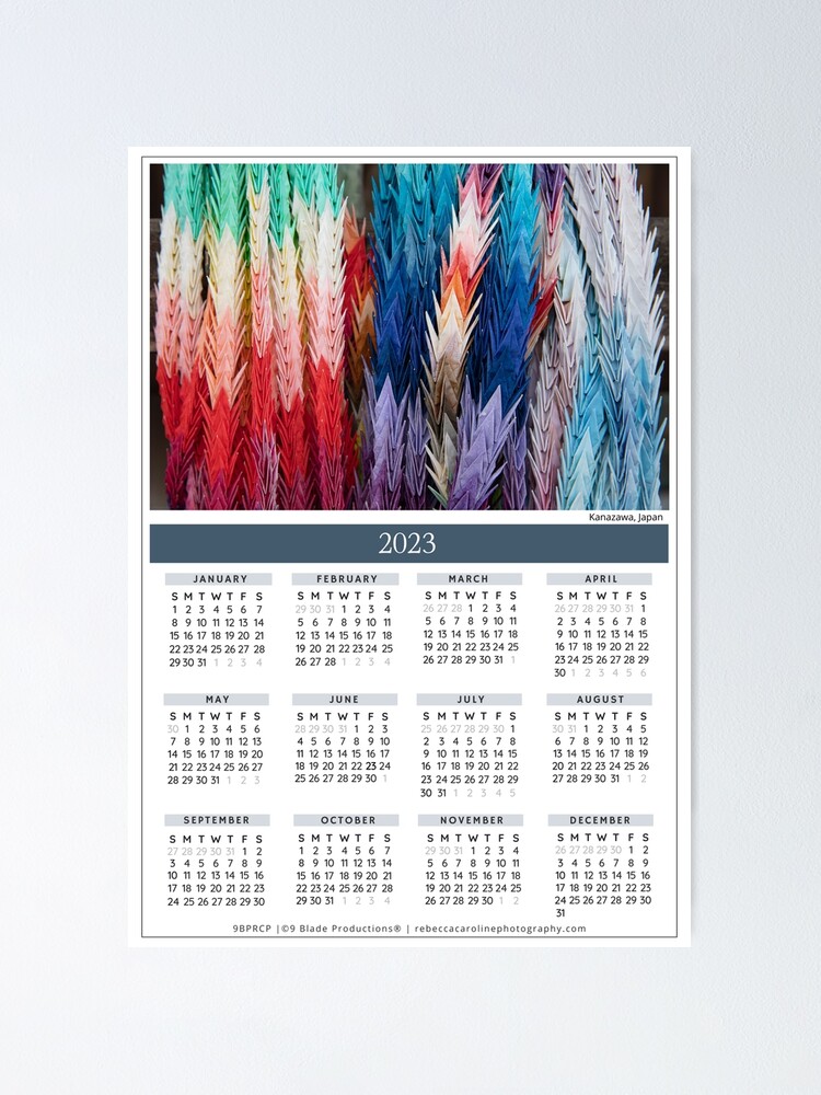 2023 Calendar | Year At A Glance | Paper Cranes | Kanazawa