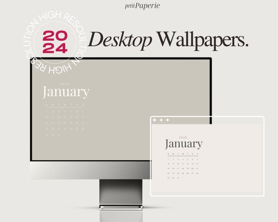 2024 Monthly Desktop Calendar Wallpaper Minimal Neutral Etsy UK
